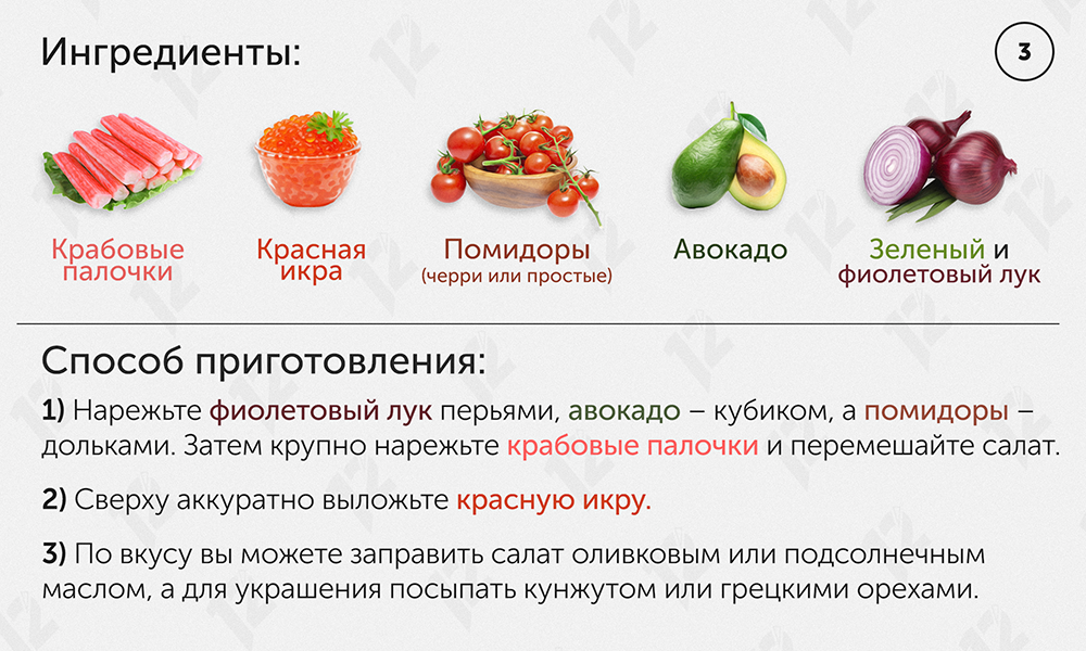 Красной икрой можно не только украсить закуску, но и салат. Чтобы приготовить следующее блюдо, вам нужно: