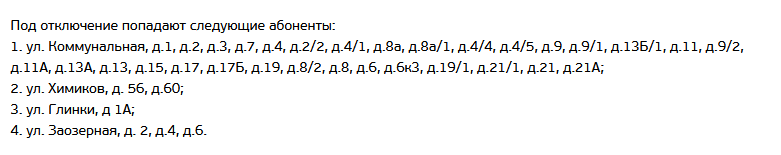 сайте организации, работы будут проводиться сегодня и завтра — 27 и 28 февраля, а также 1, 3 и 6 марта. Сегодня с десяти утра до десяти вечера рабочие проводят врезку нового пожарного гидранта на Коммунальной, 19. В итоге без воды на целый день останутся жители домов на улицах Коммунальной, Глинки, Заозёрной и Химиков.