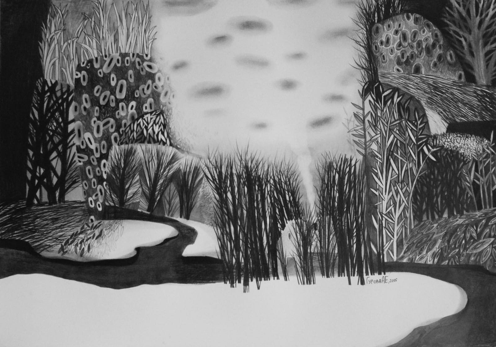 Однако есть и существенные различия. Так, образы Натальи Гуровой цветные и расплывчатые. Это особенности акварельной монотипии. Анастасия же предпочитает карандашную технику, и в её работах есть чёткая структура и логика. При этом обе художницы любят создавать пейзажи, в том числе городские. Рисуют и натюрморты.