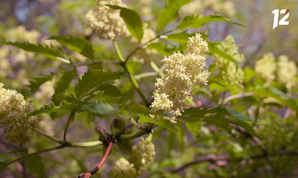 Кроме сирени, в этом «оазисе» уже зацвели дикие абрикосы, яблони, груши и бузина. Есть и редкий вид черёмухи, которая называется Царская кровь. Она отличается своими постепенно краснеющими листьями — они полностью меняют цвет с зелёного на бордовый, начиная с июня и до середины июля.