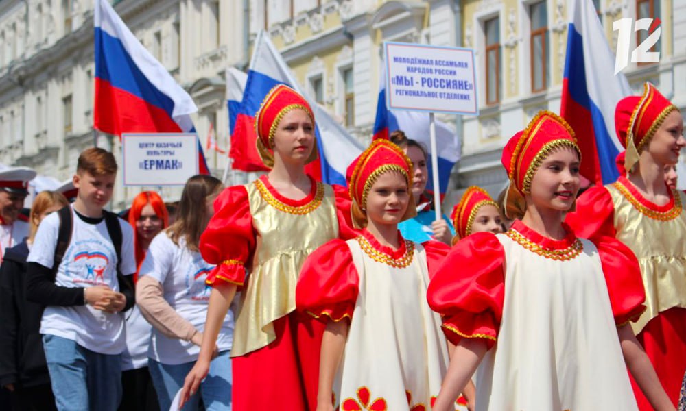 Сегодня, 12 июня, в честь празднования Дня России в центре Омска состоялся парад национальностей. Участники шествия прошли по Любинскому проспекту до Юбилейного моста к площади Победы, где размещена главная сцена.