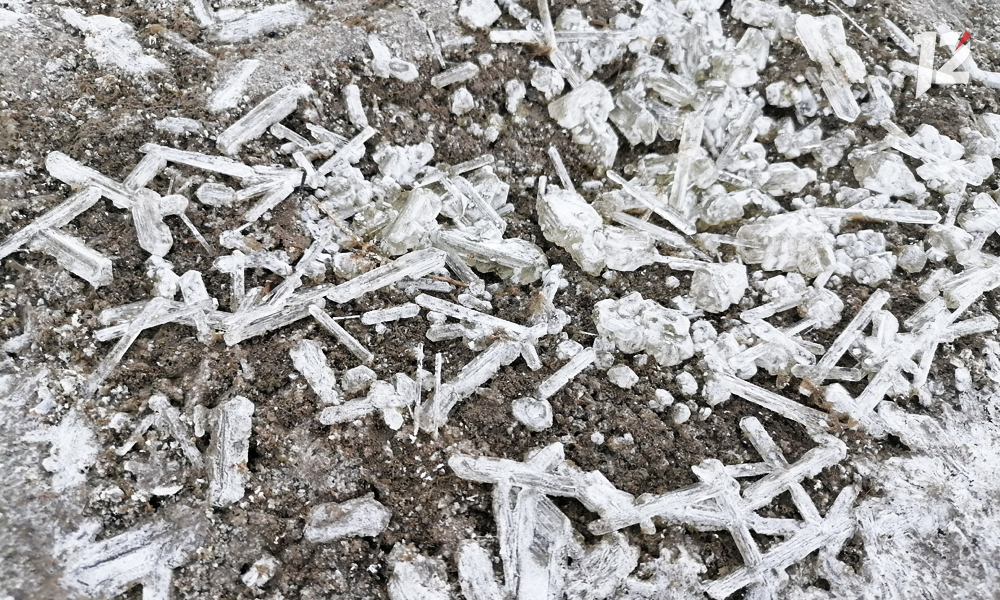 Почва, кстати, здесь тоже сильно засолена. Кристаллы буквально валяются под ногами. Они все разные, и это словно арт-объект, который природа создала под открытым небом. Здешние пейзажи не зря называют «марсианскими», что также привлекает любителей фотосессий. Отметим, что босиком тут лучше не ходить — кусочками соли можно порезать ноги.