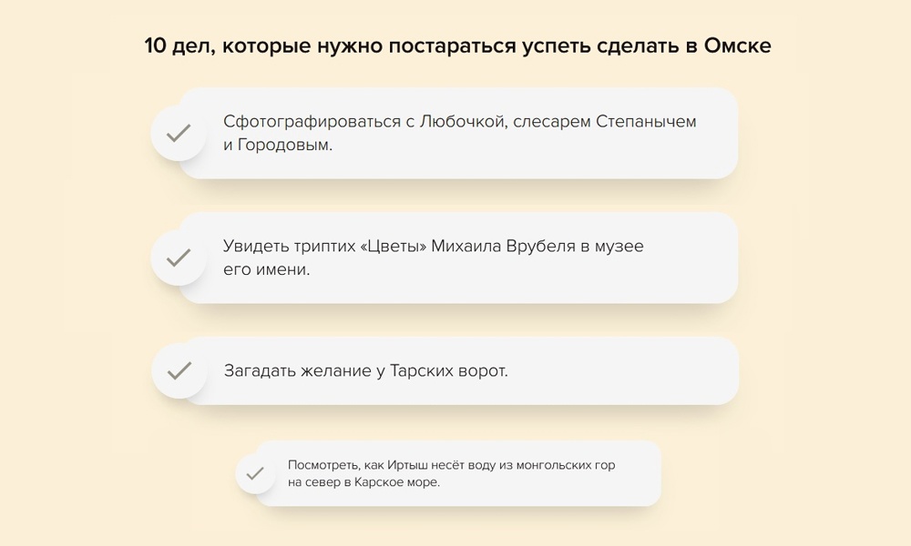 Кроме того, для самых активных туристов создали чек-лист «10 дел, которые нужно сделать в Омске».