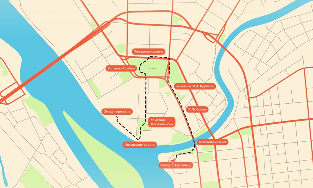 Создатели разработали маршрут по самым знаковым местам центра Омска. Данный путь займёт около двух часов и поможет за это время прочувствовать ритм и атмосферу города.