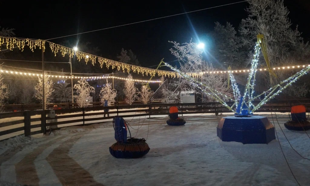 Кроме катка, гости парка смогут прокатиться на двух горках. Высота одной из них — семь метров, а второй — три метра. Также можно будет посетить зимние аттракционы.