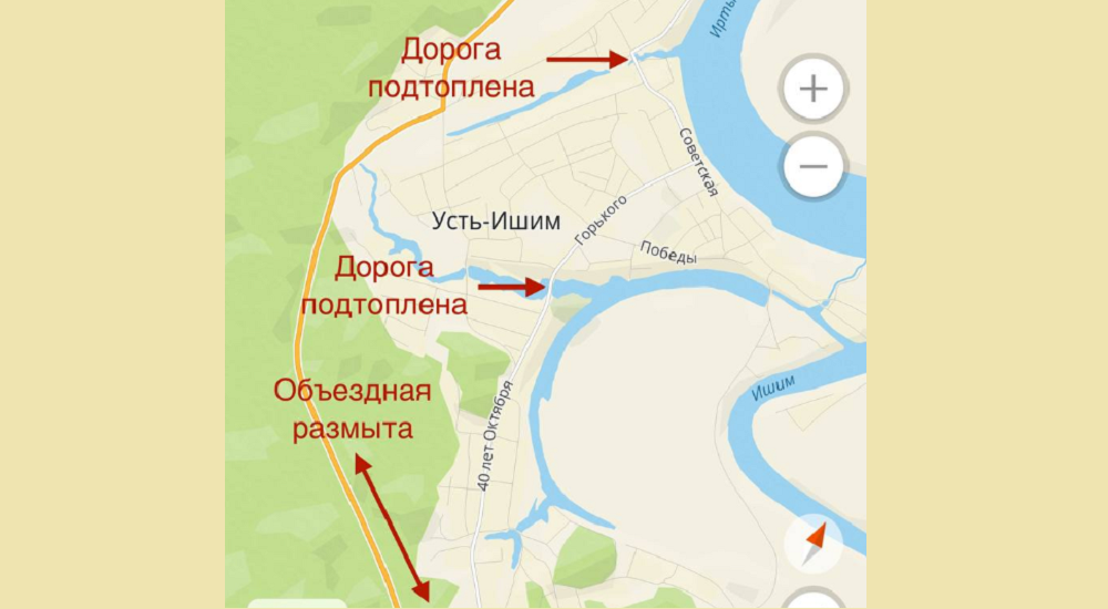 Ситуацию в Усть-Ишимском районе, в котором из-за подъёма воды в реках затопило несколько населённых пунктов, усугубляет дождь. Власти просят исключить ночные передвижения даже в районном центре. Сейчас, поздним вечером 13 мая, дождь продолжается. В Усть-Ишиме затопило улицы Советскую и Горького. Объездная дорога размыта.