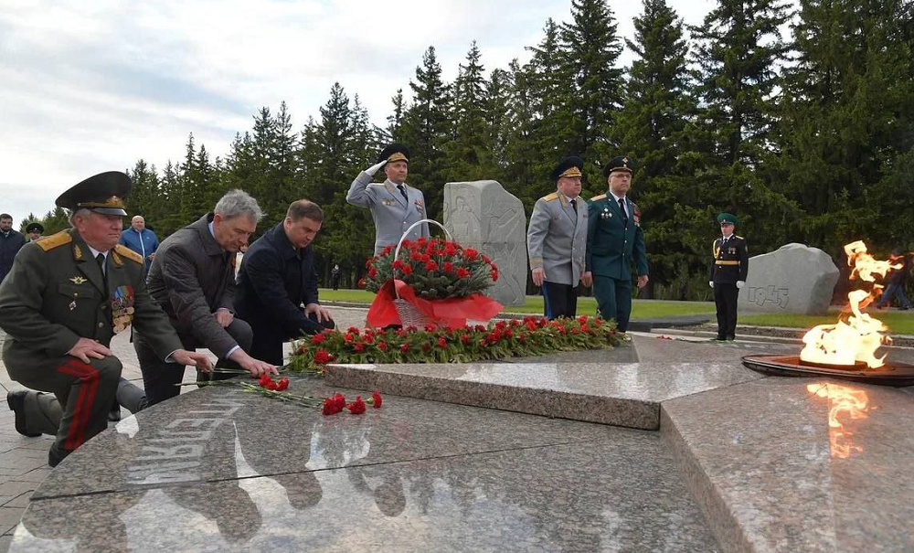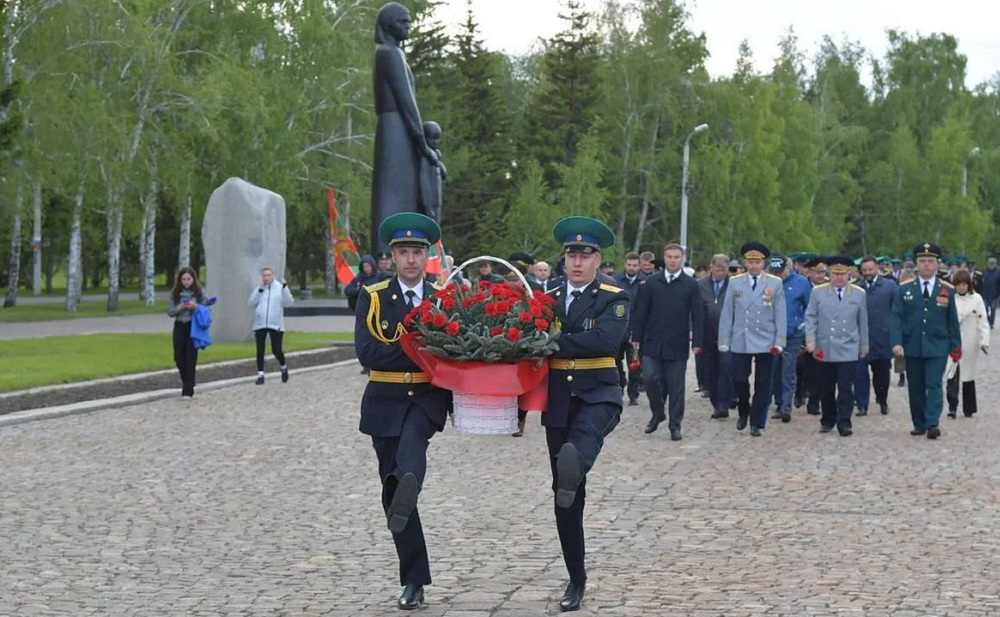 Собравшиеся возложили цветы к Вечному огню в память об омичах — участниках Великой Отечественной войны и пограничниках, погибших при выполнении воинского долга.