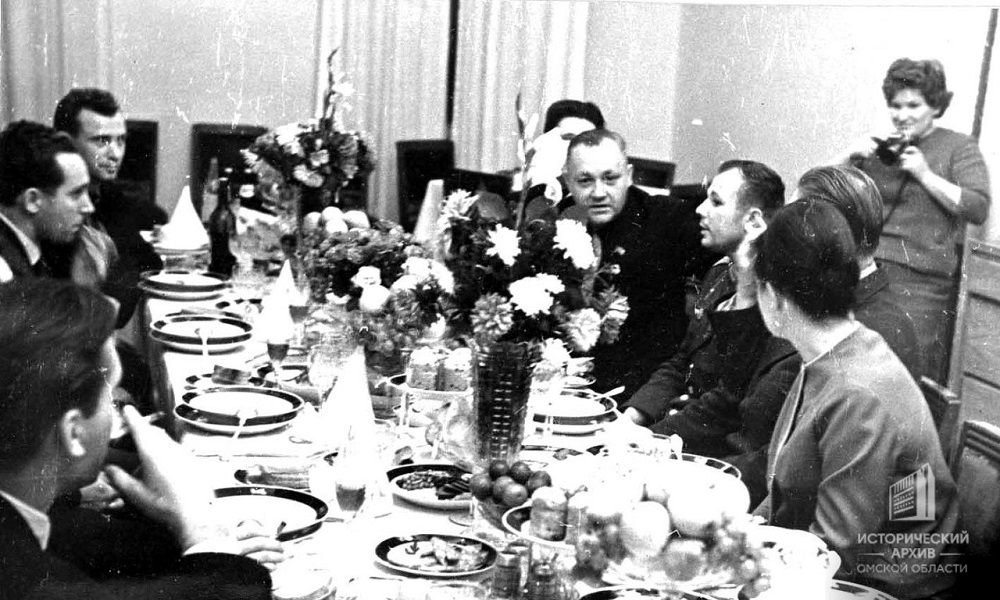 В Омске сохранились уникальные фотографии первого космонавта планеты Юрия Гагарина, посетившего наш город 24 сентября 1963 года. Его самолёт проходил техобслуживание. На фотографиях авторства Леонида Потемкина первый космонавт присутствует на торжественном обеде и раздает автографы омичам.