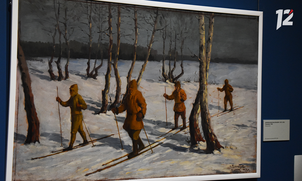 Подготовка к масштабному проекту длилась два года. Многие работы специально для него были отреставрированы и теперь впервые с 20-х годов прошлого века показываются публике. Например, эта картина Ильи Волкова «Лыжники». Художник написал её для выставки в 1928 году на простой фанере, из-за чего она быстро потеряла экспозиционный вид. Реставраторам здесь пришлось нелегко.