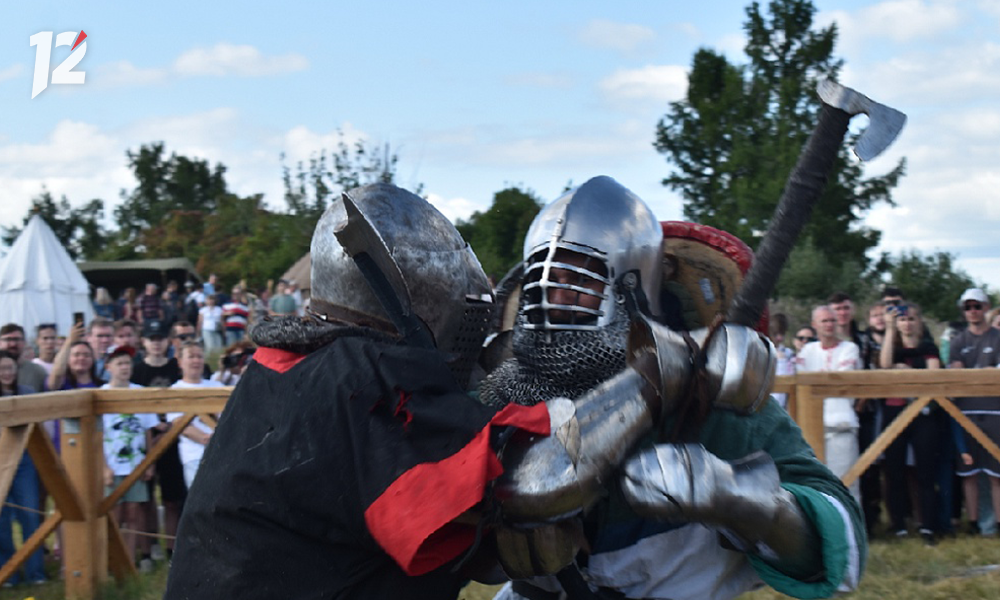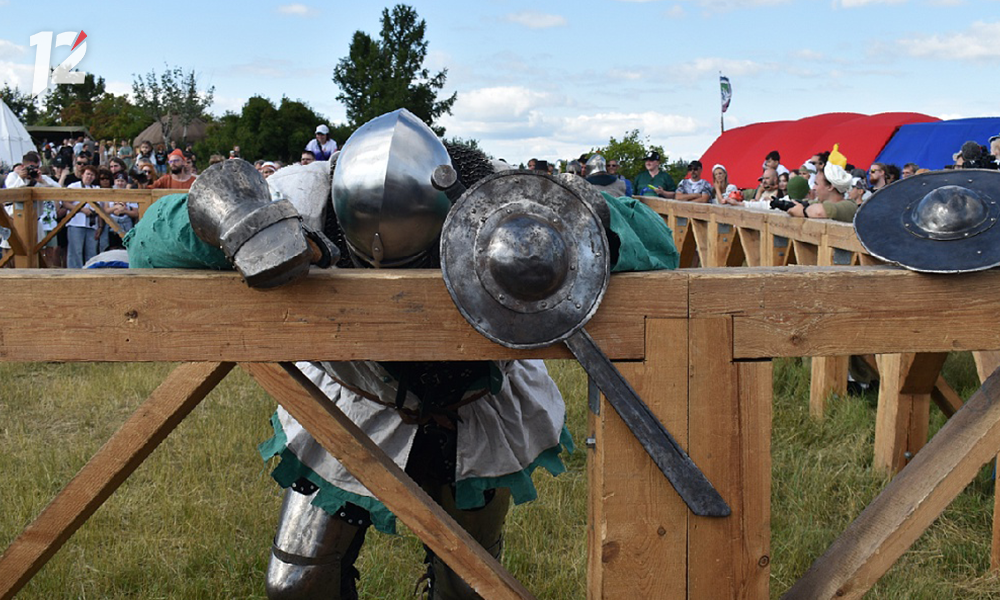 А в центре фестивальной территории разместилось ристалище — место для рыцарского турнира. Он привлёк больше всего зрителей. Сидящие на земле воины — как бы убиты, они проиграли сражение, пропустив удар противника. А те, кто ещё находится на ногах, продолжают бороться за победу.