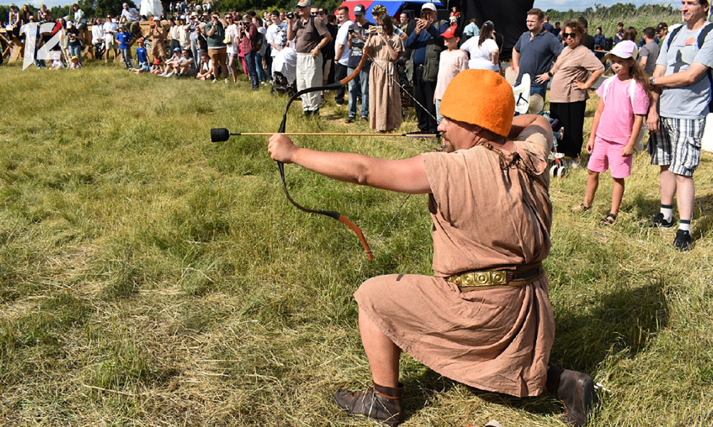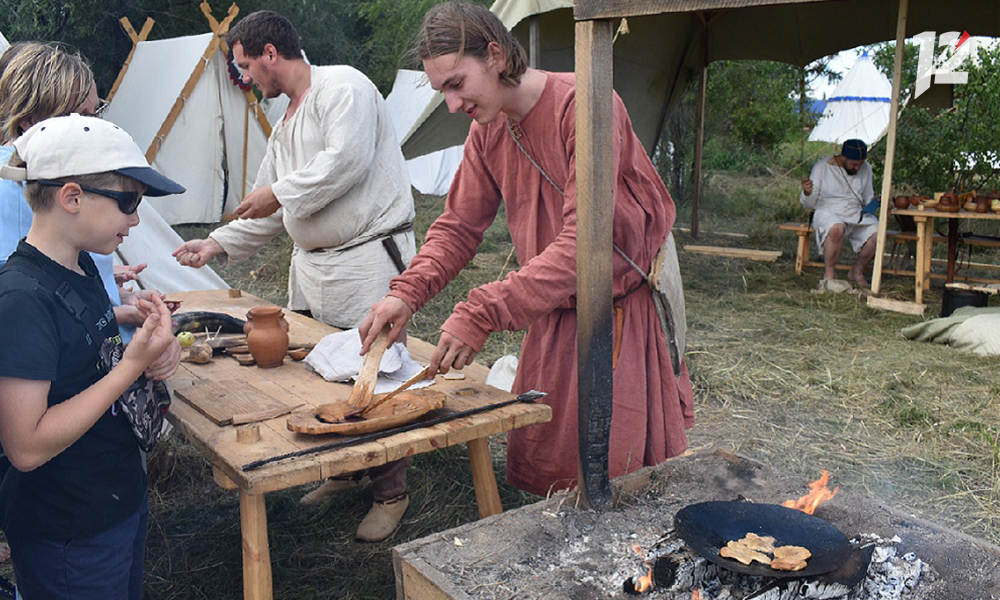 Местом проведения фестиваля стал уже традиционно парк 30-летия Победы. Здесь раскинулся большой лагерь под открытым небом, где на каждой площадке была представлена своя эпоха — от Античности до Ренессанса. Например, во времена древних римлян приглашали погрузиться участники клуба Pax Romana. В палатке-мастерской желающим предлагали научиться дробить камни с помощью молотка, чтобы изготовить из них мозаику.