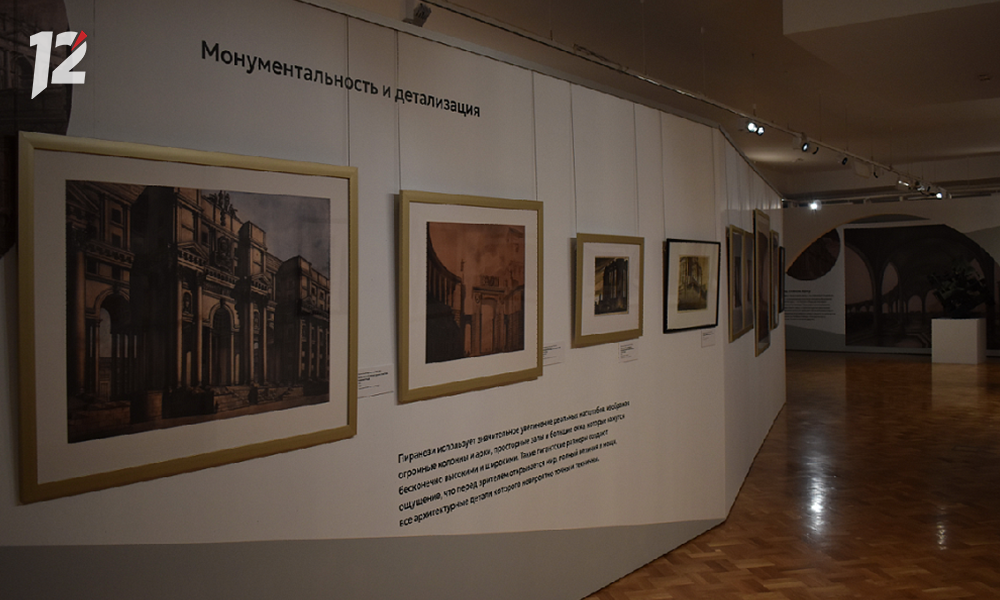 Экспозиция занимает два зала. Первый из них посвящён гравюрам итальянского мастера XVIII века Джованни Баттиста Пиранези, второй — работам советских архитекторов, в которых прослеживается его влияние.