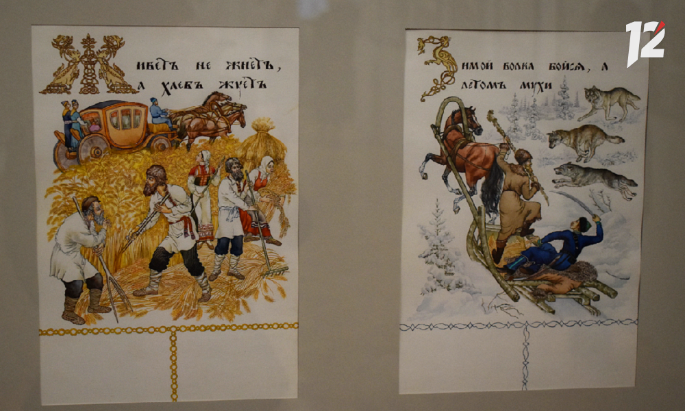 Также в зале можно увидеть иллюстрации к Толковому словарю Владимира Даля для школьников и сказкам Ганса Христиана Андерсена.