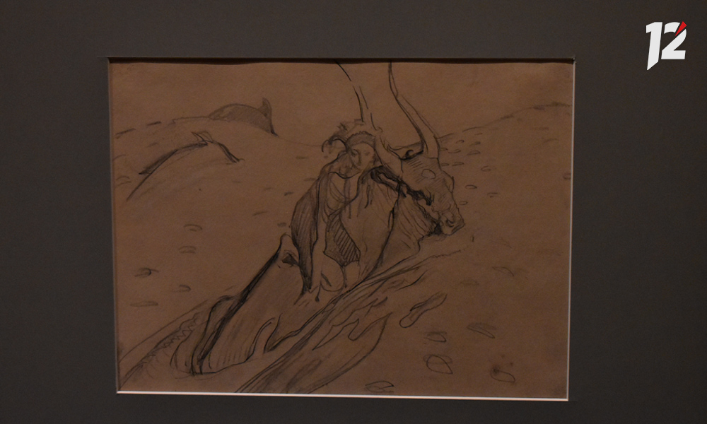 На выставке представлены несколько эскизов к «Похищению Европы». Замысел картины родился у художника в Греции. Как реалист он даже при создании античного мифологического сюжета обратился к натурным впечатлениям. В образе Европы Серов соединил лицо античной статуи и фигуру натурщицы, позу которой долго формулировал в набросках. Для изображения Зевса в образе быка он ездил в Орвието, в окрестностях которого разводили особо крупных быков.