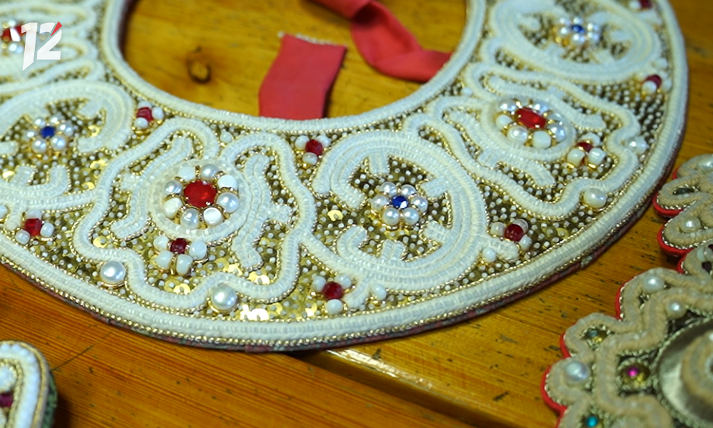 «Образцы я нахожу в музейном госкаталоге, там прописаны размеры и материалы. Рисую сама схему вышивки, это занимает очень много времени. Потом создаю макет из картона, смотрю, как он садится по голове, затем уже сажусь за пяла и вышиваю. Только на вышивку уходит примерно 2-3 месяца», — поделилась Ирина Казакова.