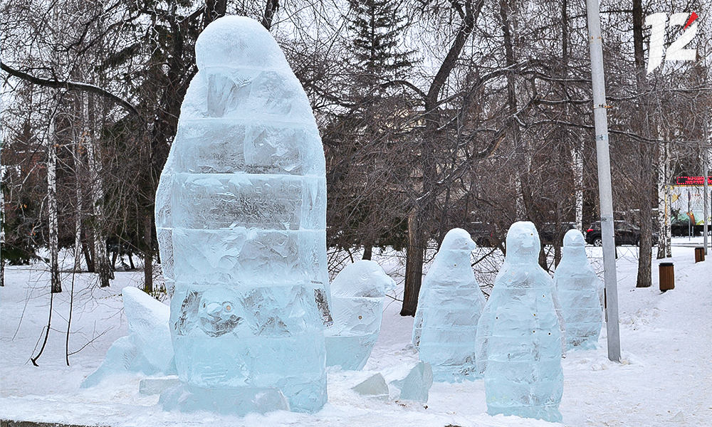 В омском Выставочном сквере, где летом проходит «Флора», в 2021 году мастера ледовой скульптуры создали композицию из 13 пингвинов. Был здесь даже папа-пингвин с детёнышем. Омичи сделали малышу глазки из монеток.